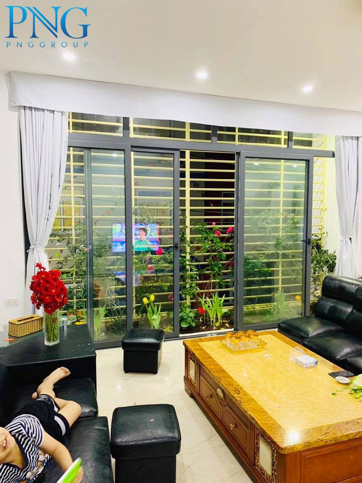 Nhà với thiết kế khung cửa lùa nhôm kính vừa chắc chắn mà vẫn sang trọng, mang lại không gian xanh thoáng mát cho ngôi nhà trong thành phố